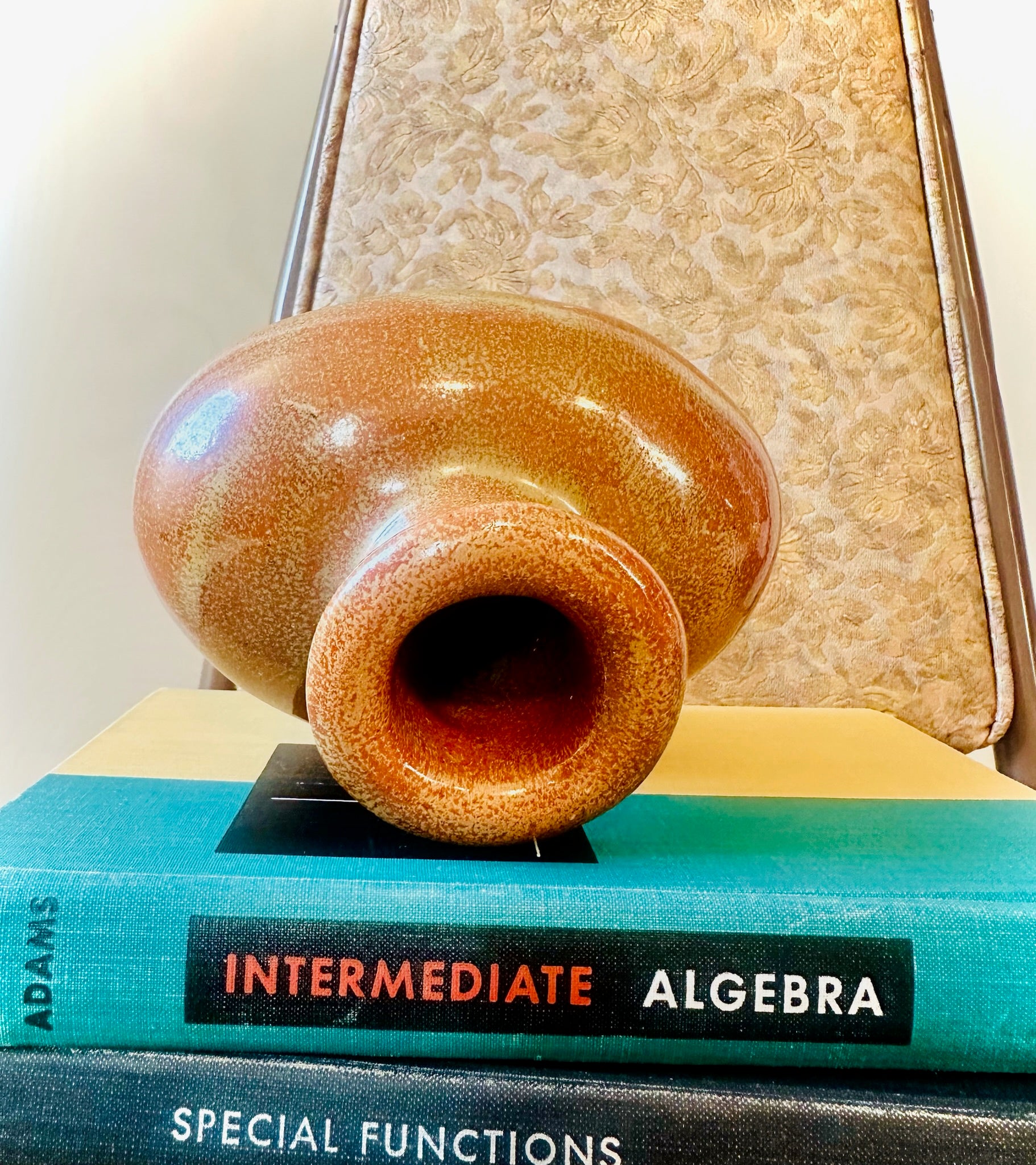 Add a vibrant touch to your space with this 1969 vase. Featuring funky colors and a bold design, this vase brings a playful yet stylish vibe to any room. Its wide shape is perfect for showcasing your favorite flowers or standing alone as a statement piece. Ideal for those who love unique decor with a splash of personality.