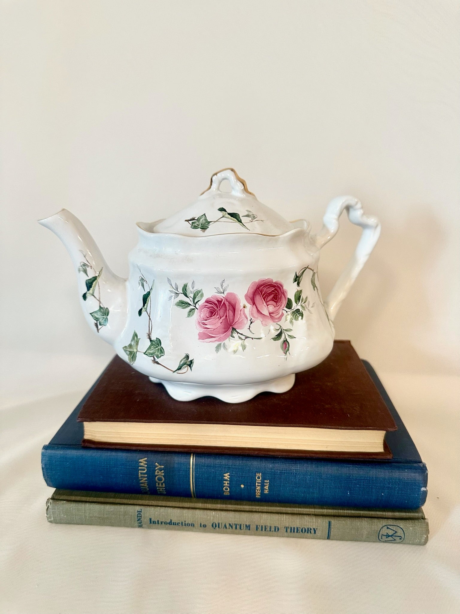 This vintage English teapot from Arther Wood & Son features a charming pink roses on the vine design, perfect for adding a touch of classic elegance to your tea time. Its delicate floral pattern and timeless shape make it a lovely centerpiece for gatherings or a thoughtful gift for collectors. Enjoy your favorite brews in style with this beautifully crafted teapot.