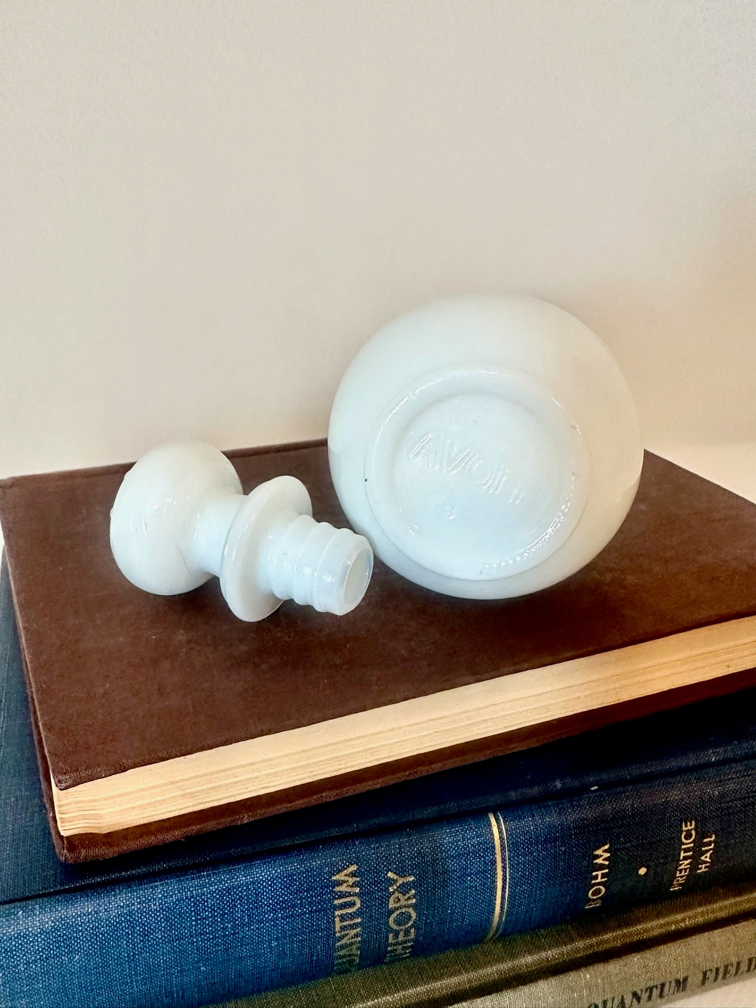 This Avon container features a classic delft pattern that is a signature from their collection.