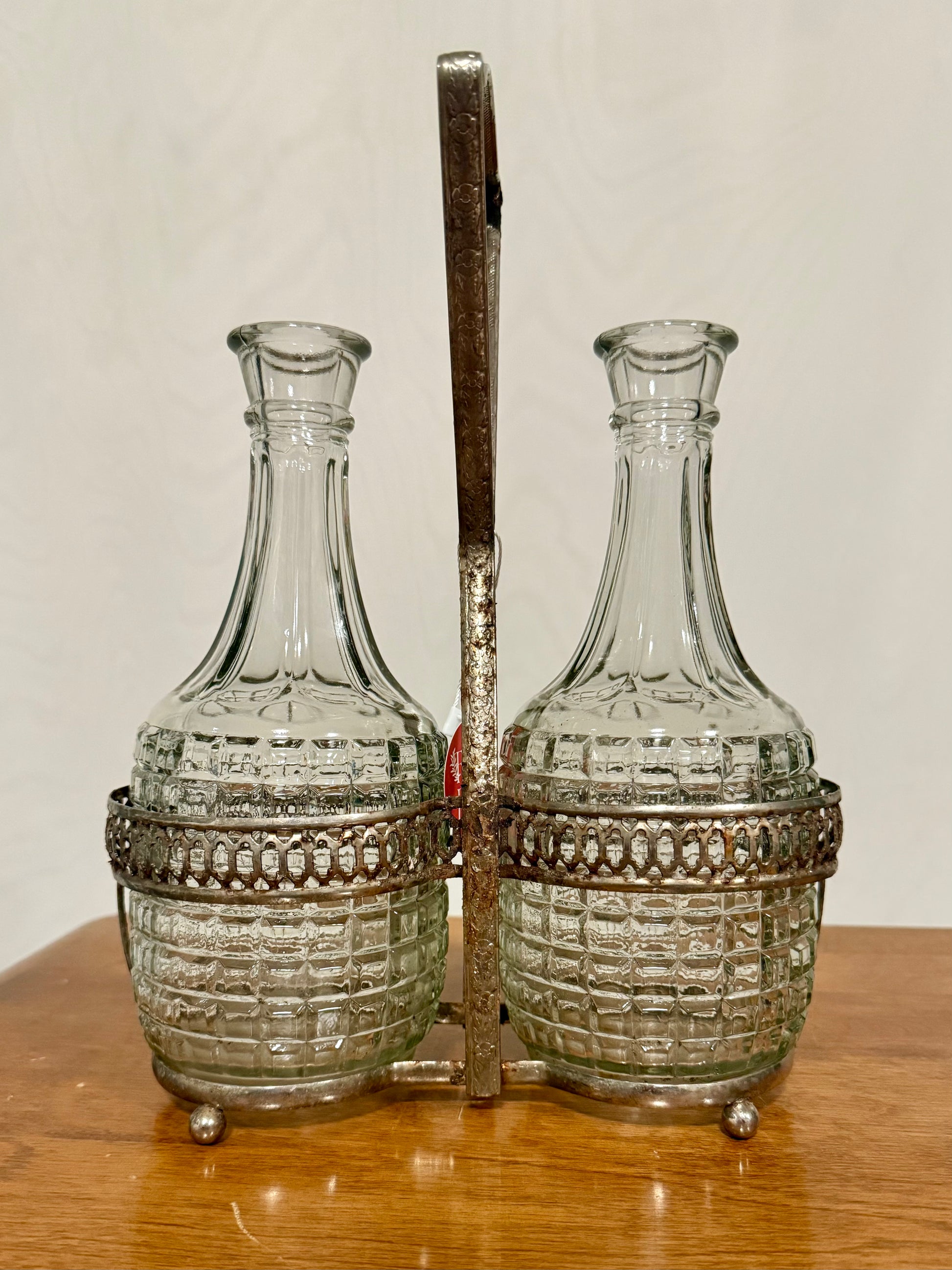 Elevate your home bar with this dual decanter set, featuring two elegant vintage-style decanters designed to showcase your favorite spirits. Perfect for entertaining or everyday use, each decanter offers a timeless look that adds character while keeping your drinks fresh. Ideal for whiskey, wine, or any beverage you want to serve with style.