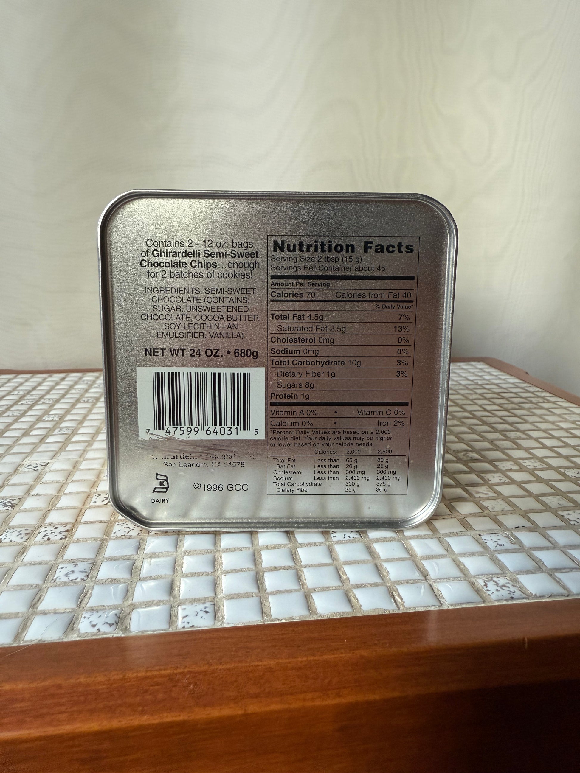 The Ghirardelli Collectors Tin 1996 features a vibrant design that brightens any space. This nostalgic tin is perfect for gifting or adding a pop of color to your collection.