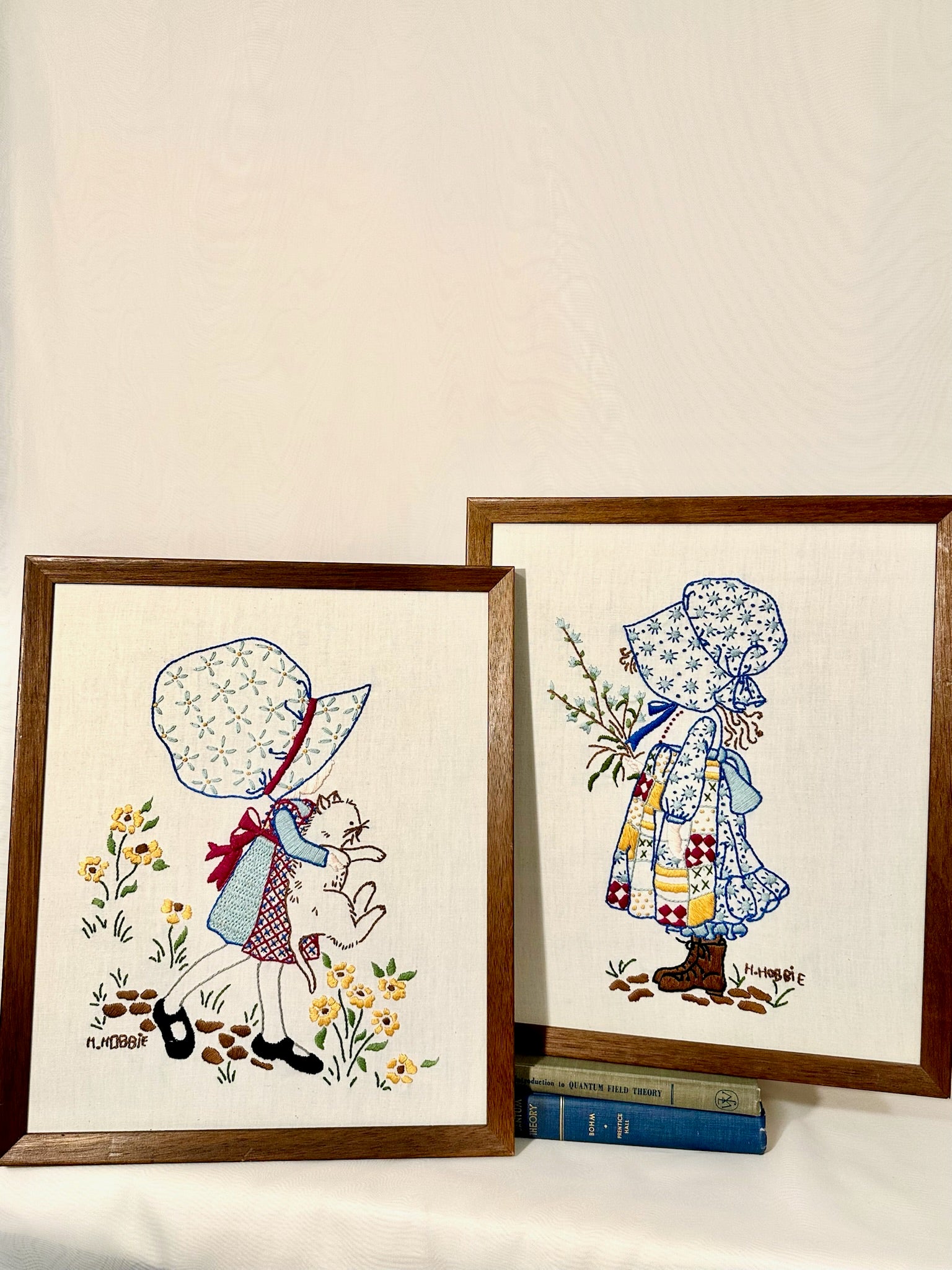 Set of 2 Holly Hobby Needlepoint Embroidery Wall Art