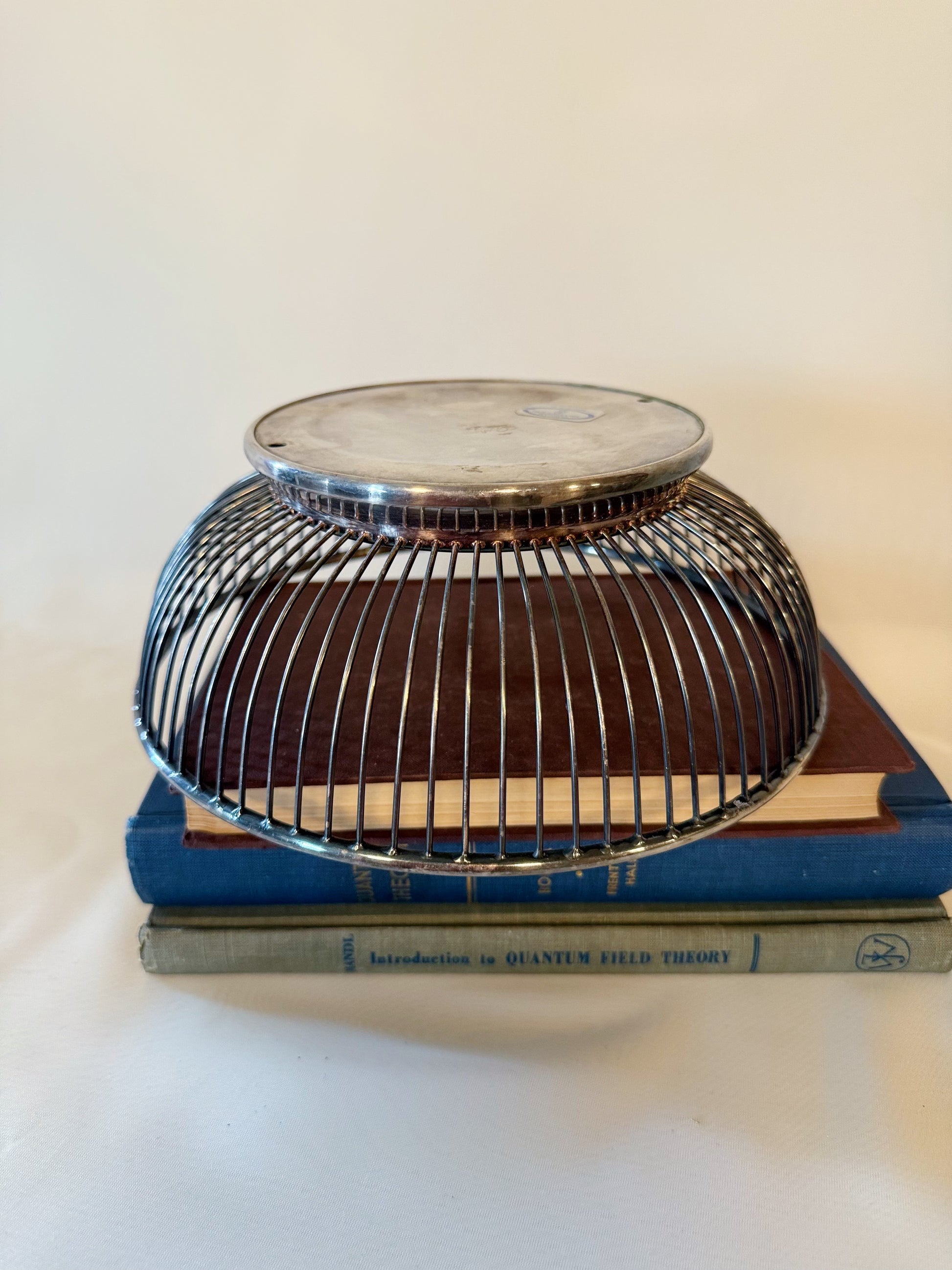 This MCM Gorham Silverplate Round Wire Basket combines timeless mid-century modern design with durable silverplate craftsmanship. Its open wire construction offers a stylish way to display or store items, adding a touch of elegance to any room. Perfect for organizing essentials or serving as a decorative centerpiece, this basket blends functionality with classic appeal.
