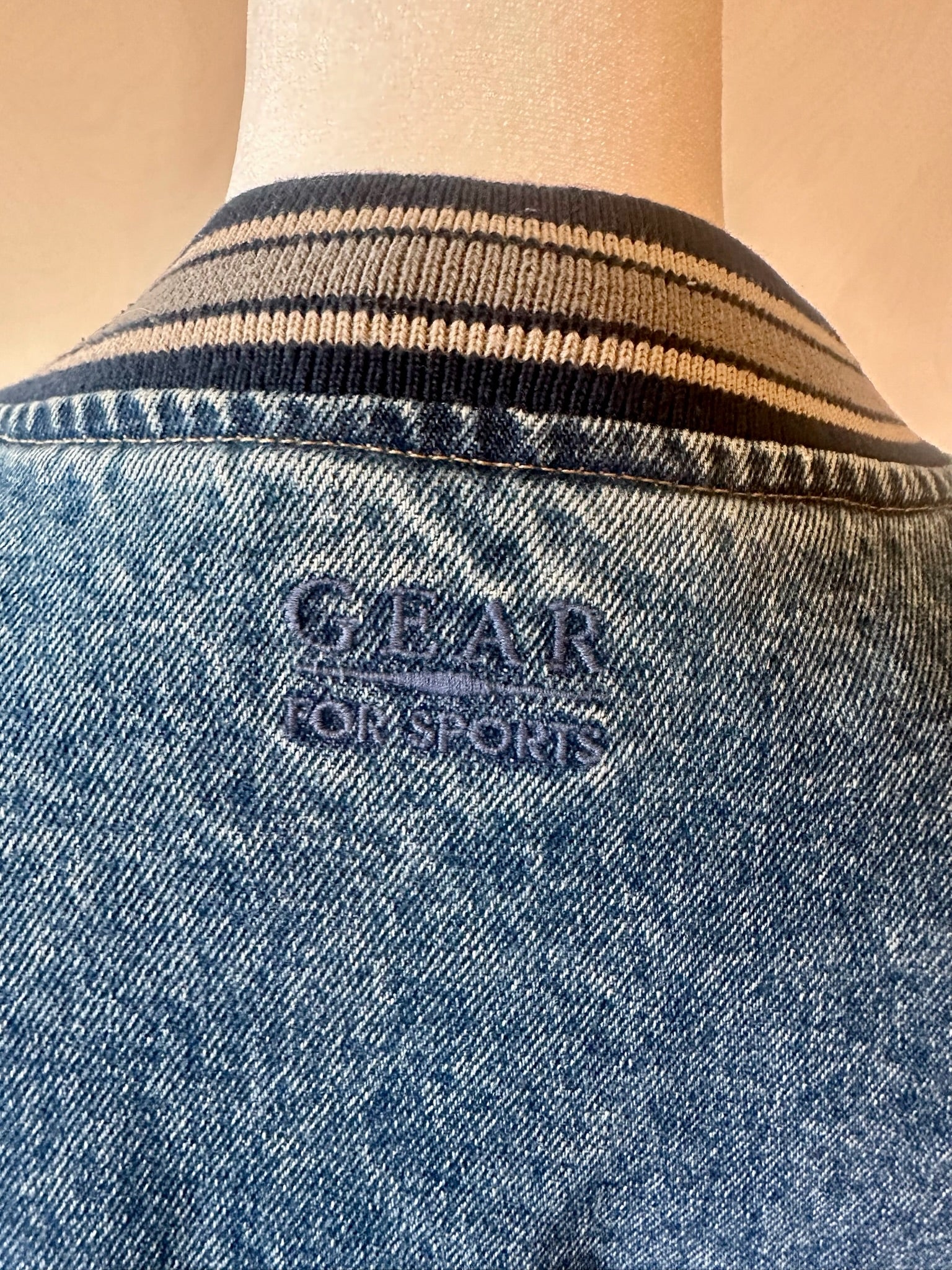 This men's XL denim jacket from Gear for Sports combines rugged durability with a stylish edge. Featuring heavy-duty fabric and full-length sleeves, it offers warmth and protection for cooler days. The embroidered goose detail adds a unique touch, making it perfect for casual outings or layering over your favorite sportswear. Durable and comfortable, this jacket is designed to keep you looking sharp and feeling confident.