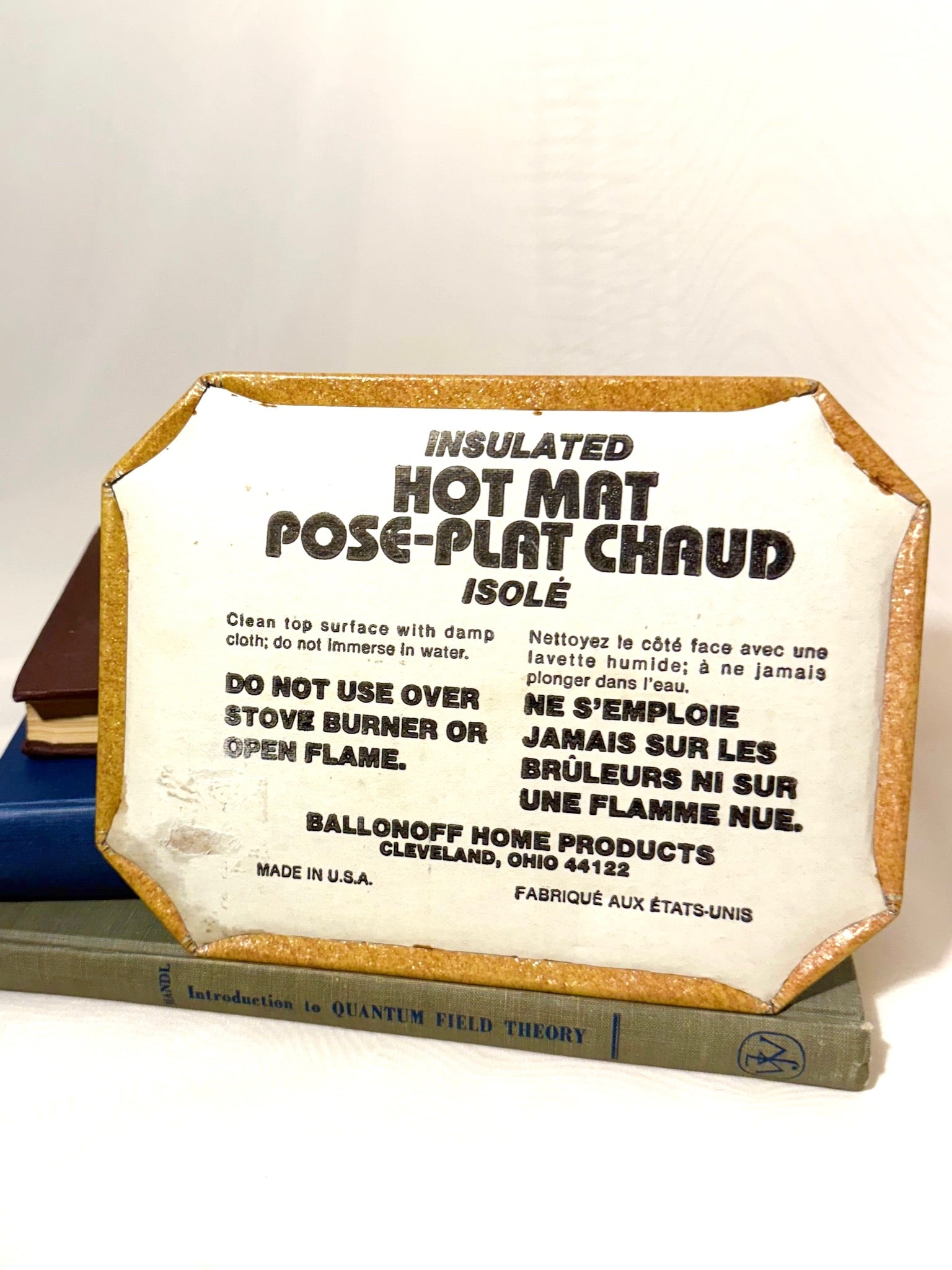Small material rip on back of hot mat. Use listing images to see condition of item. Please note that vintage decor may show signs of wear, which add to its unique character & charm.
