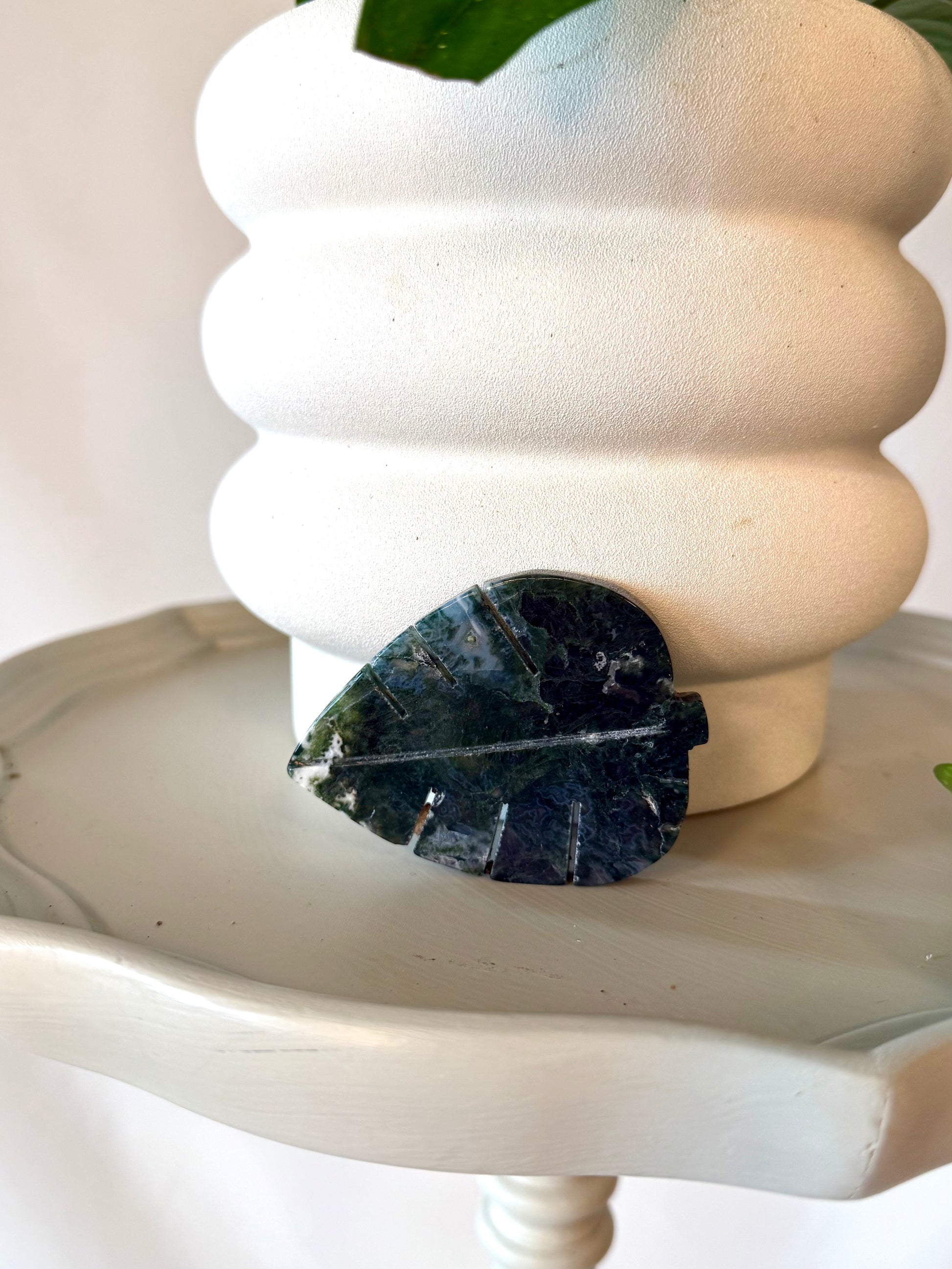 This unique crystal piece is perfect to place among your greenery, inspiring growth and vitality. Its calming green hues blend seamlessly with your plants, creating a harmonious and uplifting environment for both your plants and your space.