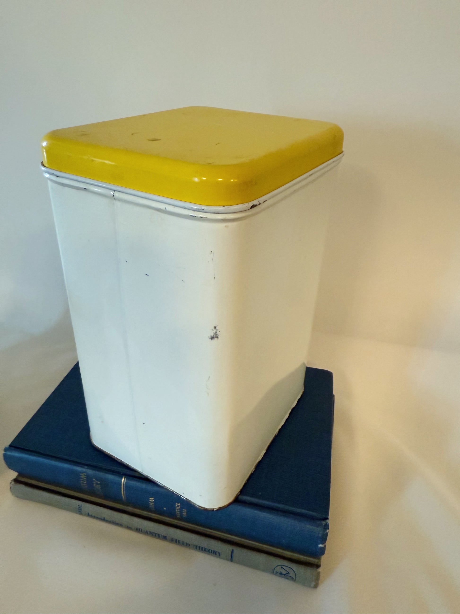 The tall canister is for sugar. The two small canisters are labeled coffee.