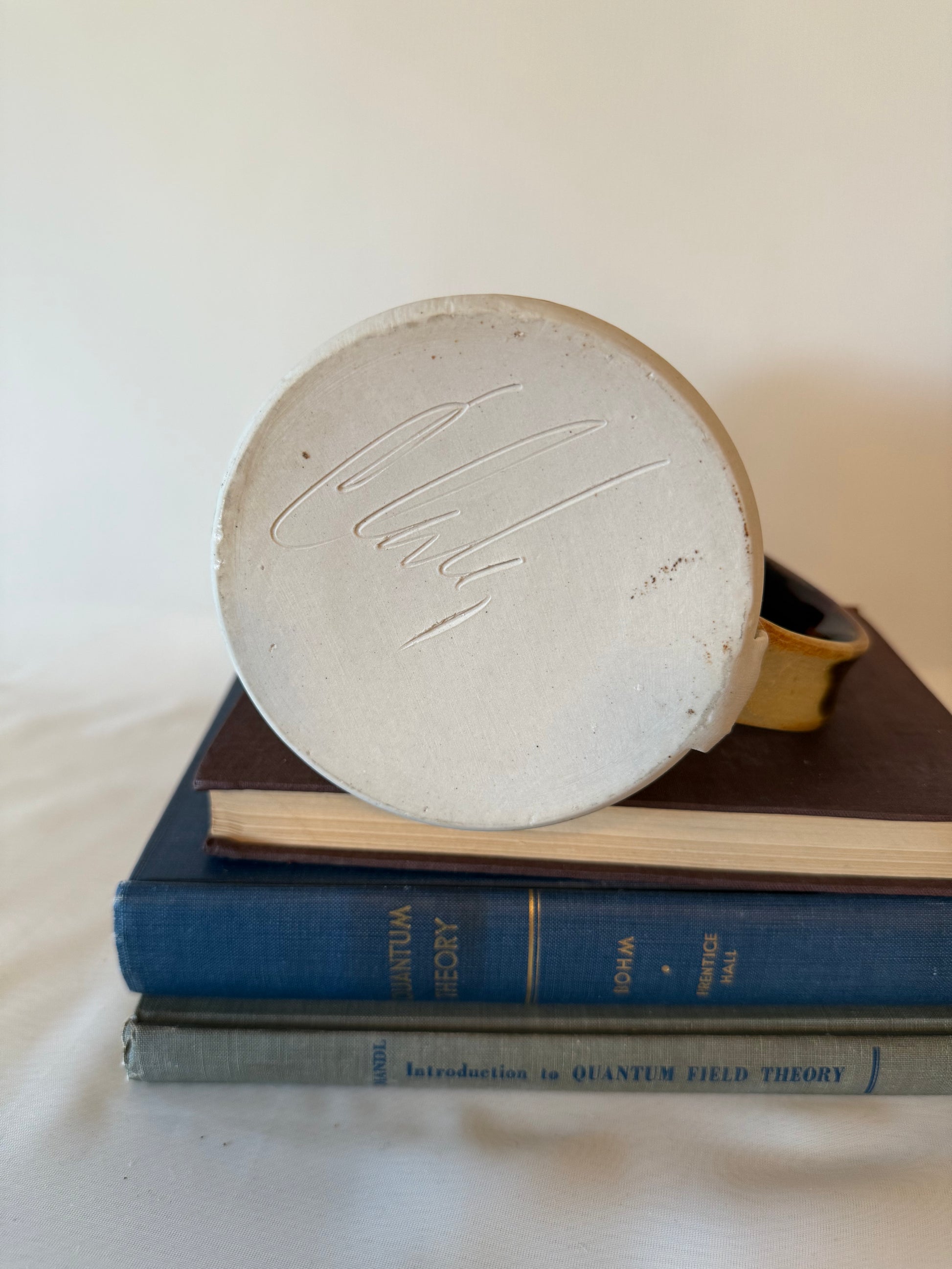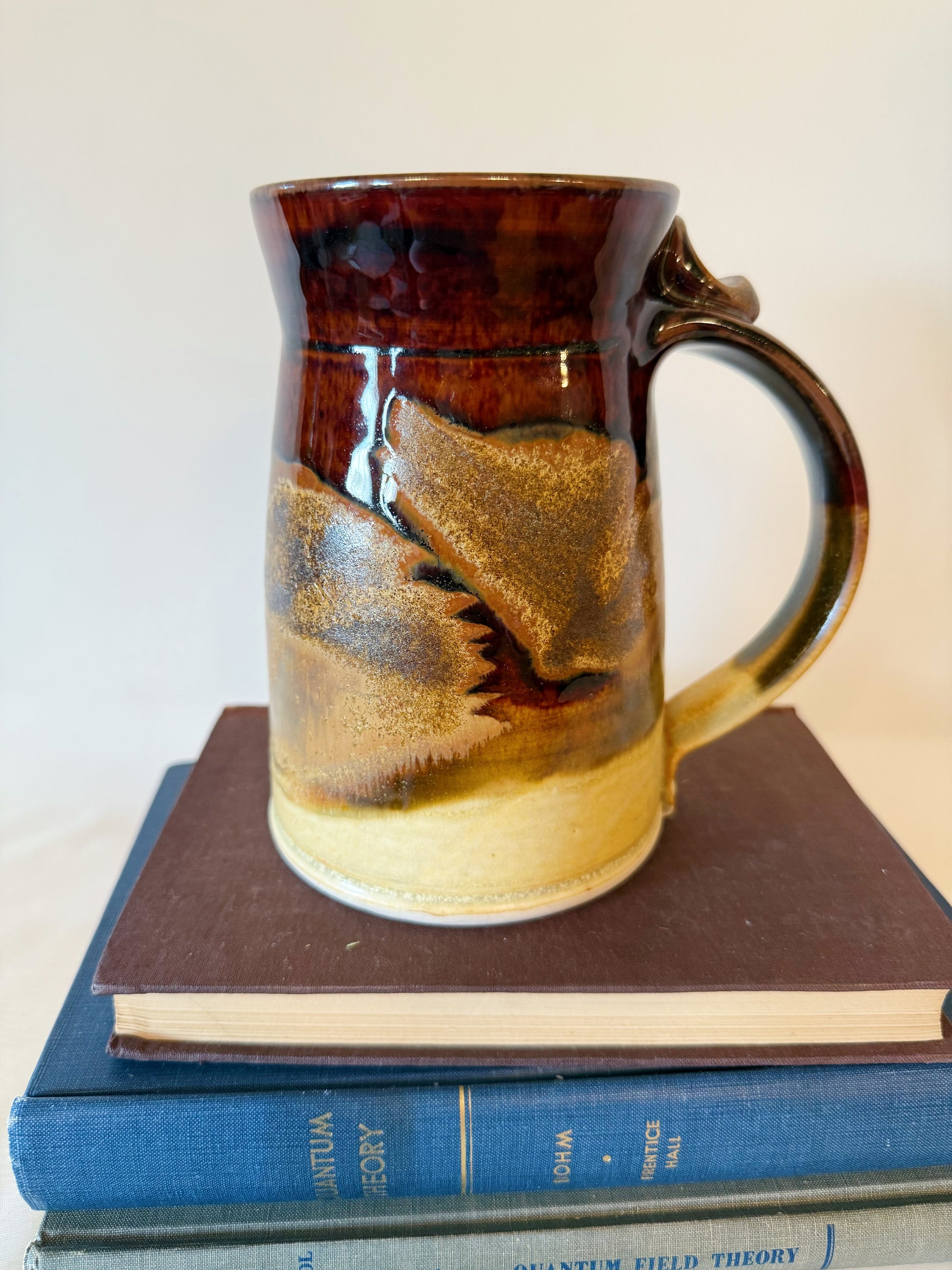 This tall stoneware pottery mug features a warm rust-colored glaze that gives this piece a unique, handcrafted look. Finished with a distinctive signature on the bottom, it adds a personal touch to your daily coffee or tea ritual. Durable and charming, it’s perfect for those who appreciate artisanal craftsmanship in their everyday drinkware.