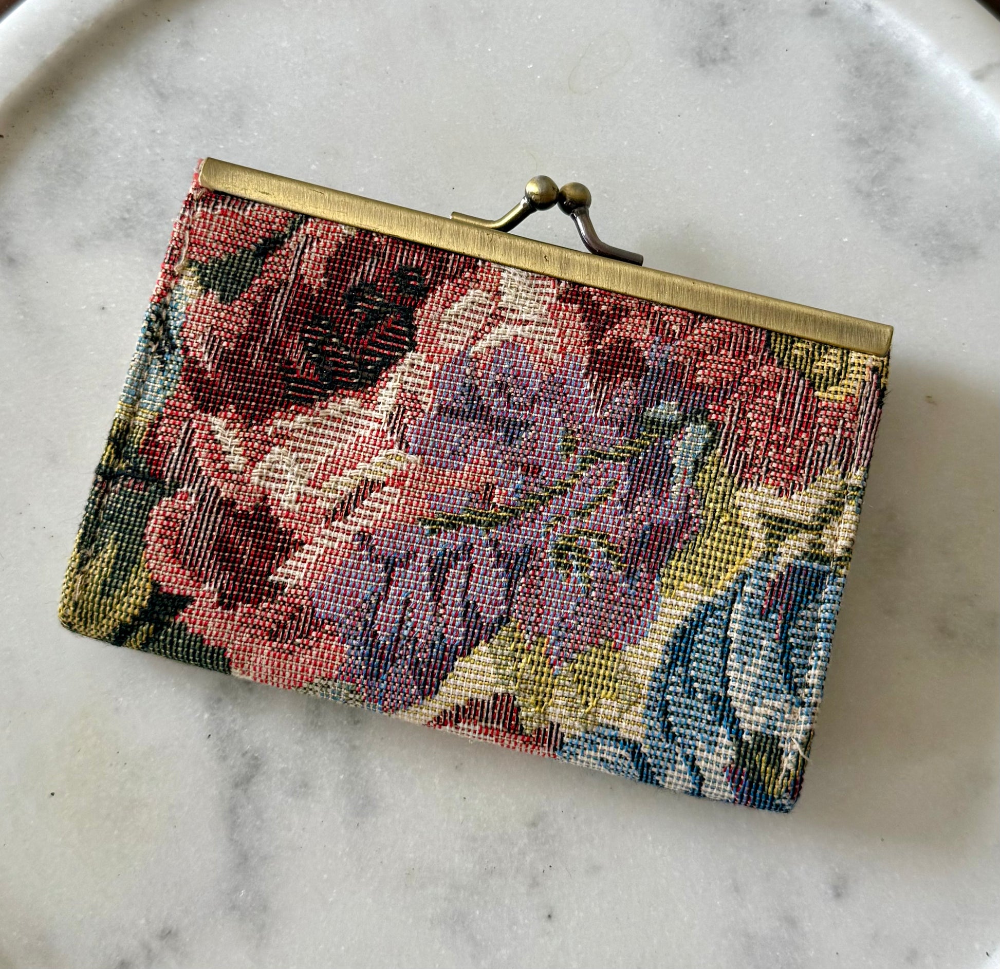 This wallet blends style and practicality in a compact design. Crafted with a beautiful tapestry exterior, it offers dedicated compartments for your coins and cards, keeping your essentials organized and easily accessible. Perfect for everyday use, this wallet adds a touch of charm while staying functional for your busy lifestyle.