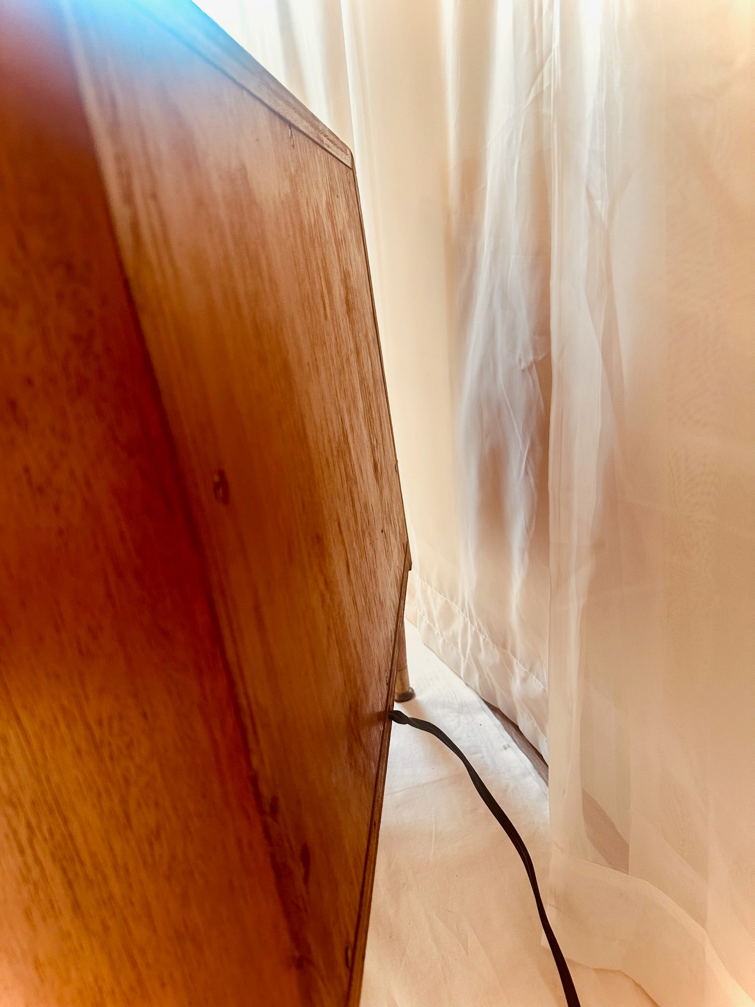 This speaker combines classic style with functionality. Its warm brown wood finish adds a timeless touch to any setup. This speaker has not been tested but has cords attached. Local Pickup only