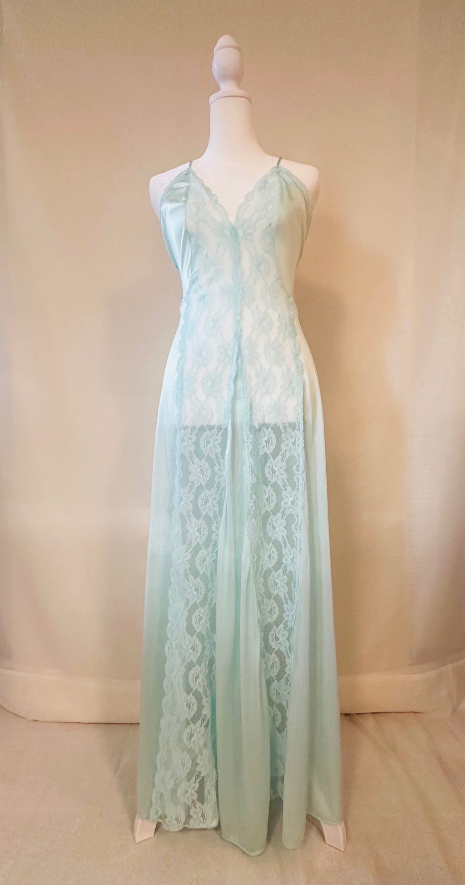 Vintage Long Light Blue Sheer Nightgown | Size Medium