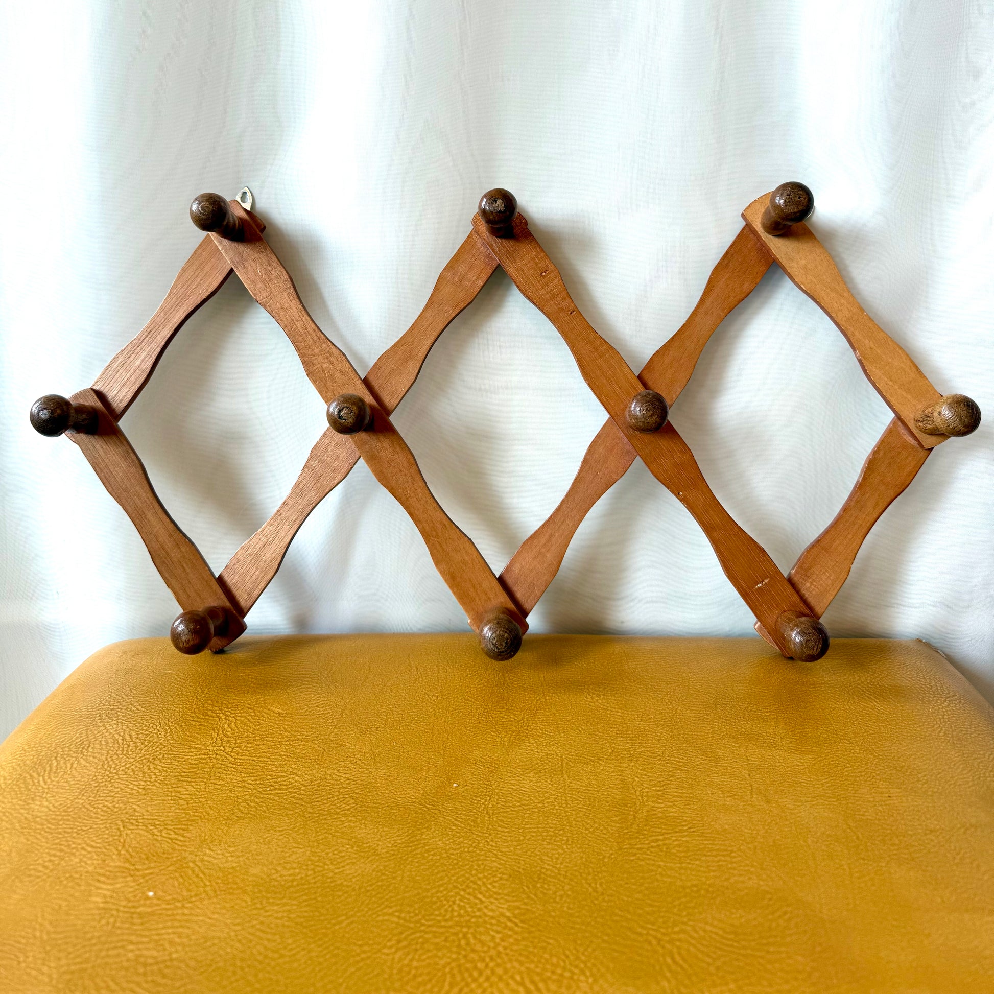 This wooden accordion wall hanging rack is a versatile and stylish solution for organizing mugs and accessories. Its expandable design allows you to customize the spacing to fit your needs, while the natural wood finish adds a warm, rustic touch to your space. Ideal for kitchens or entryways, it keeps your items accessible and neatly displayed, combining functionality with charm.